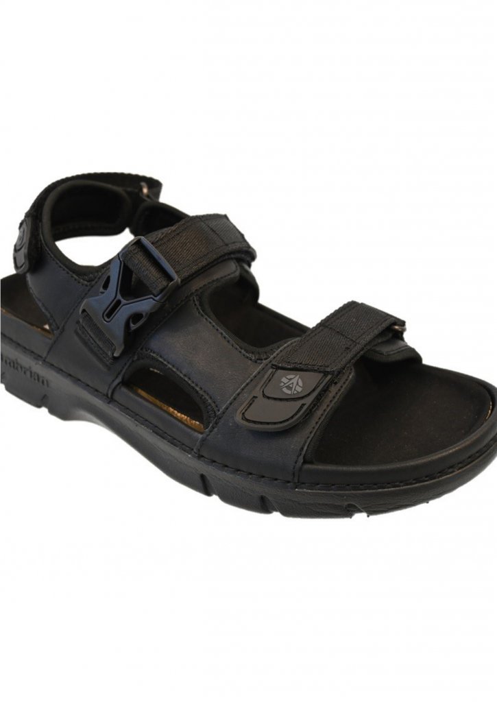 Sportig sandal i slutstarkt konstläder med bred läst och justerbara remmar.